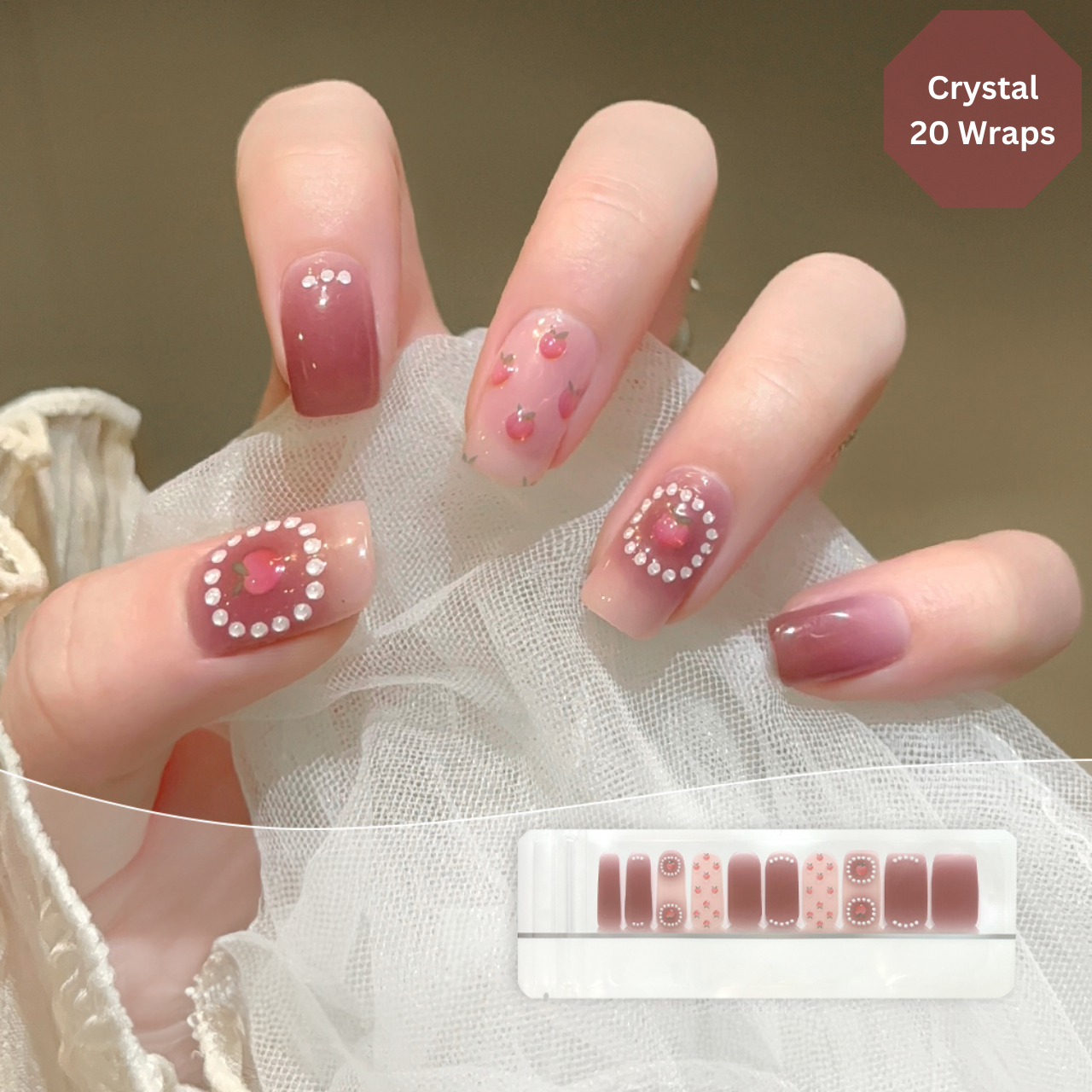 20 glossy nail wraps in 10 different sizes, can be used on both fingernails and toenails.